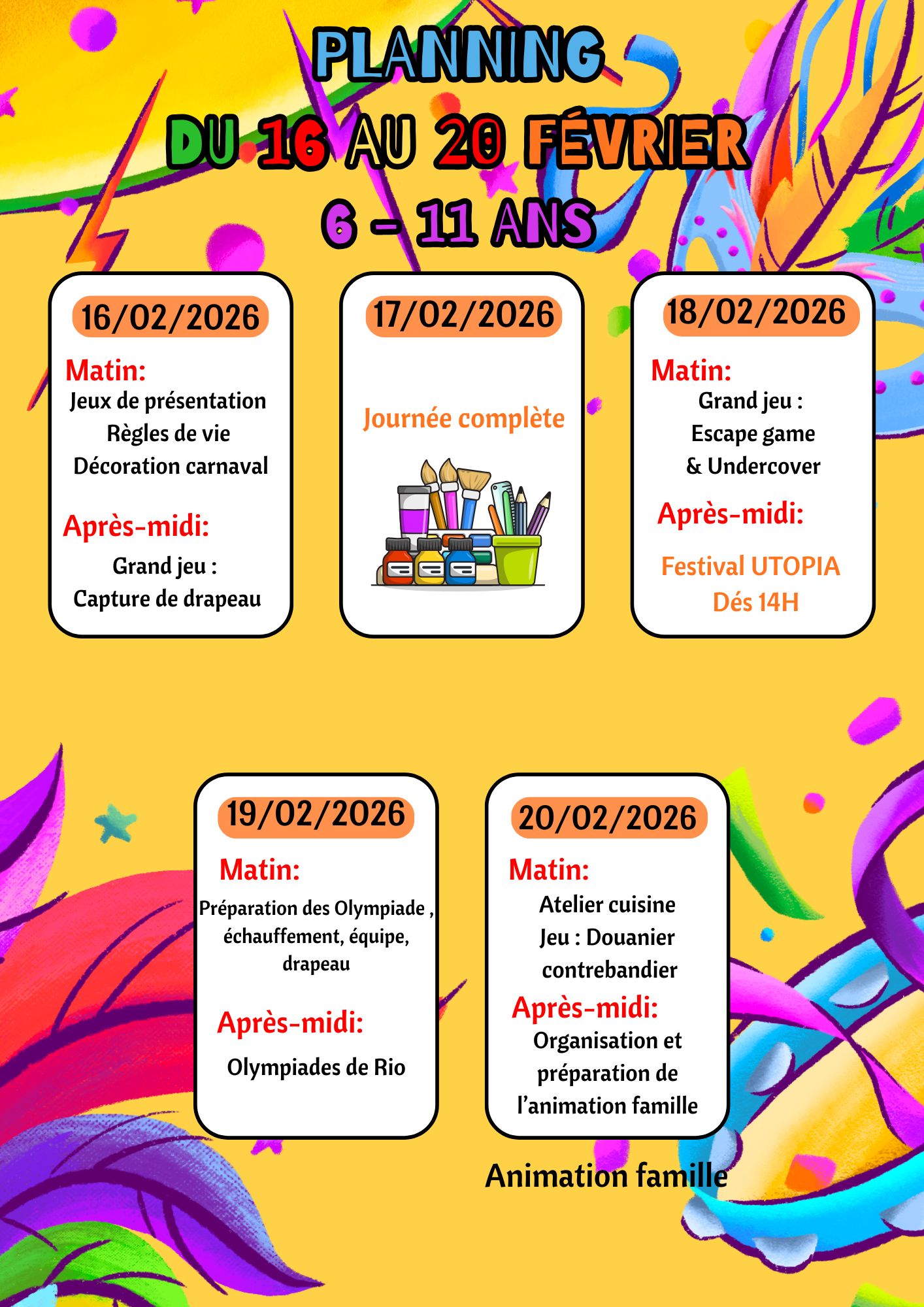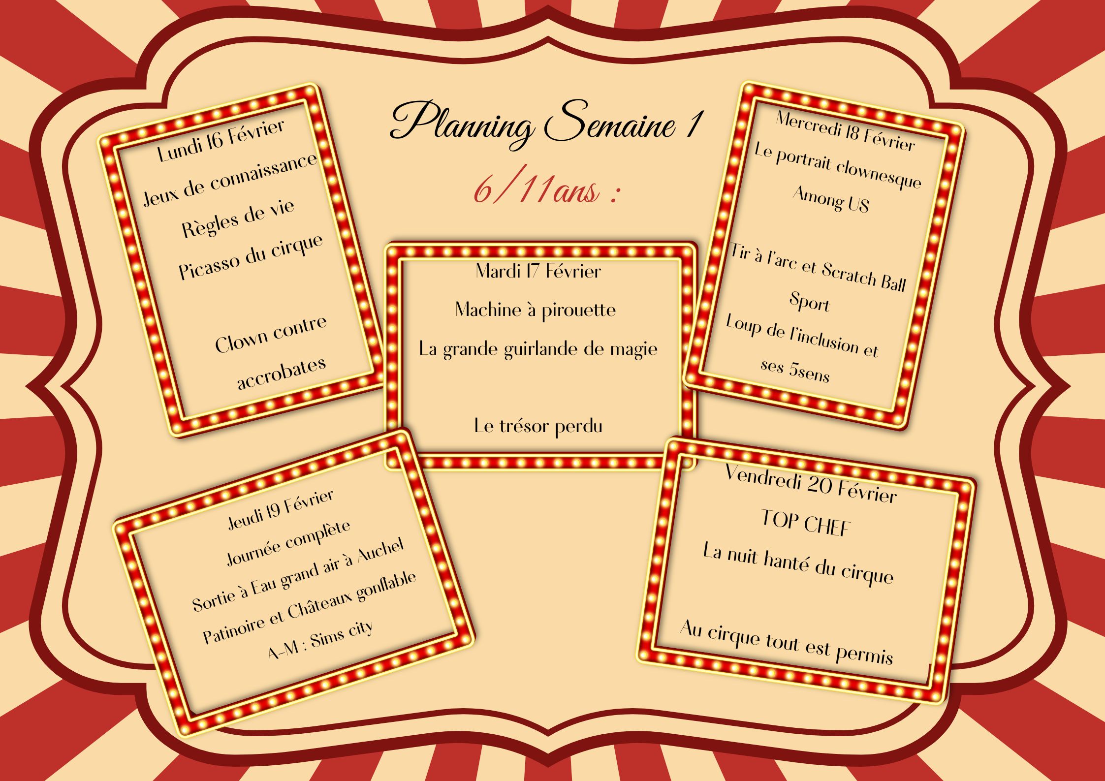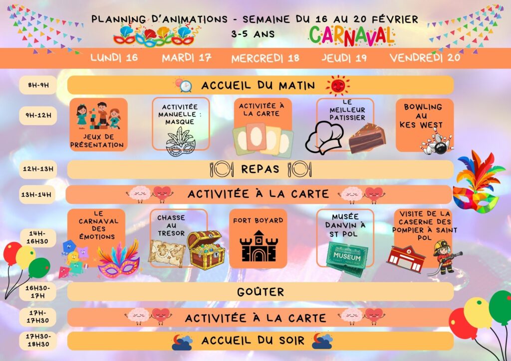 Planning du 16 au 20 février