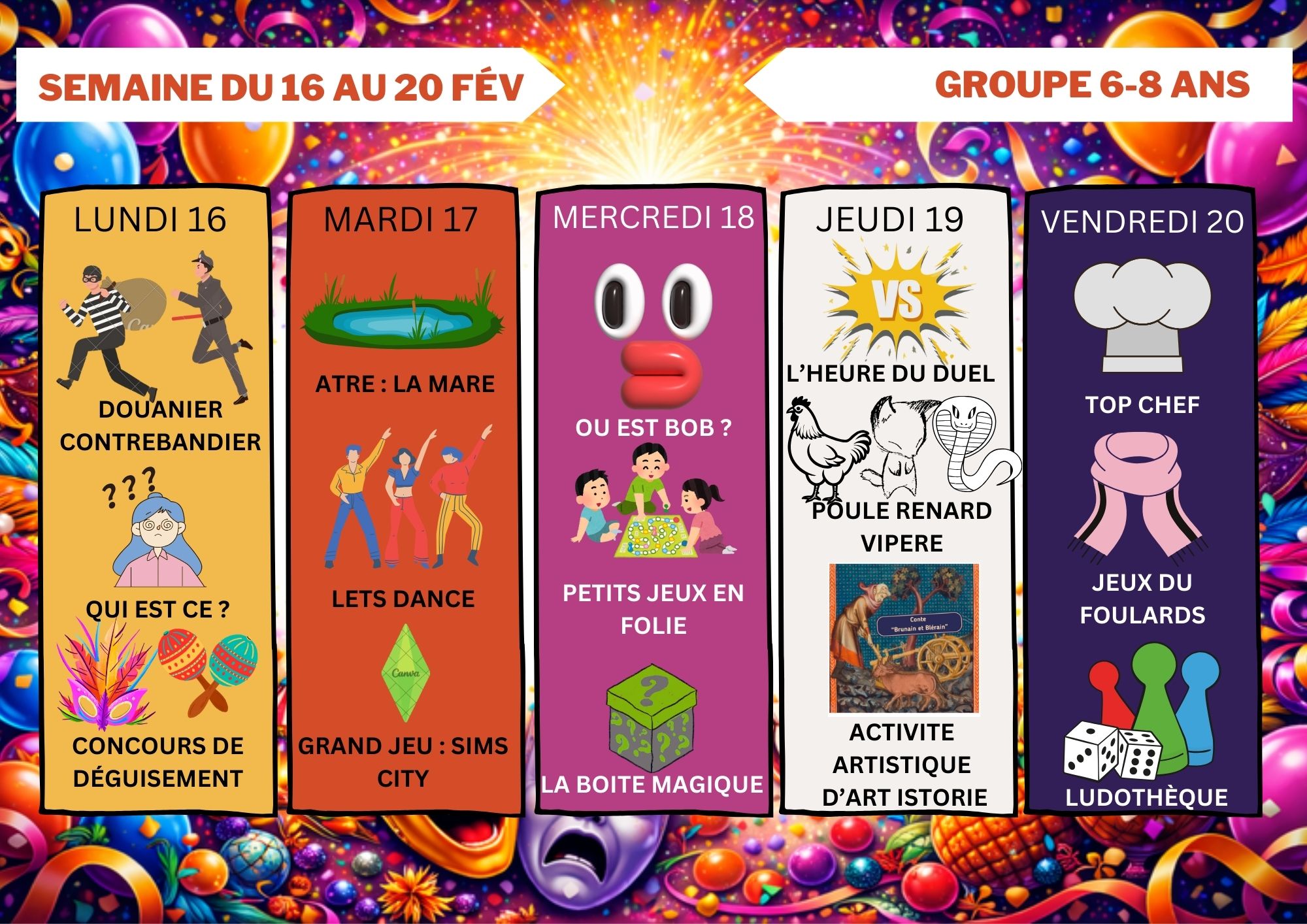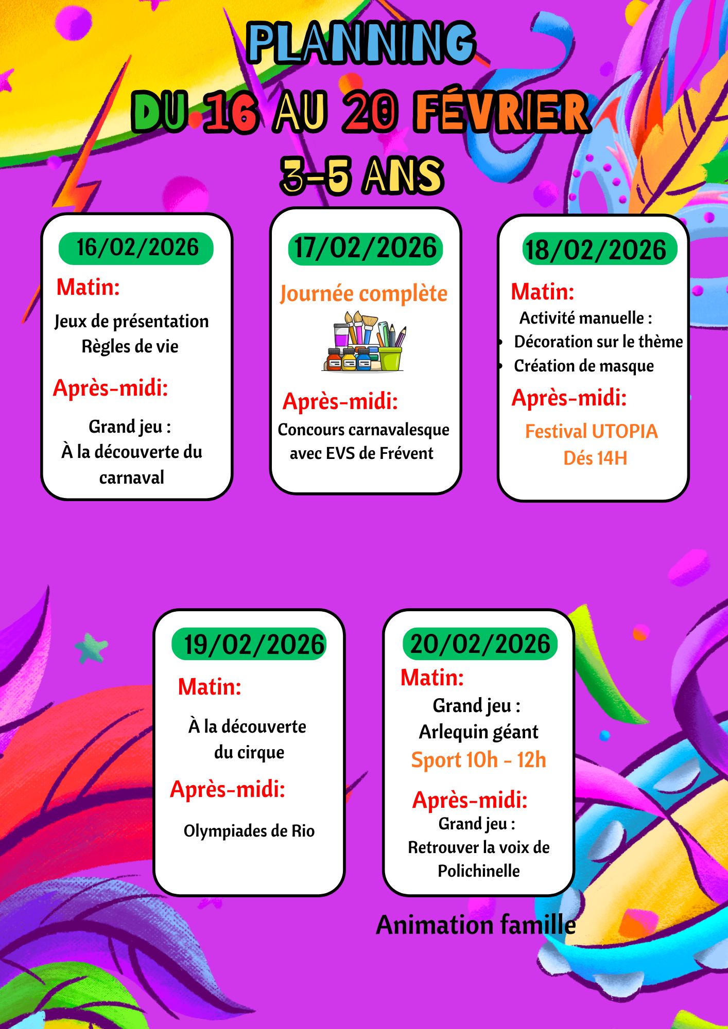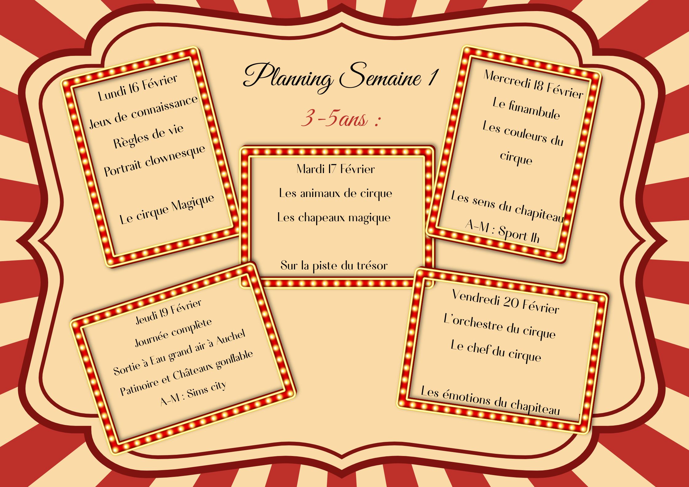 Planning du 16 au 20 février
