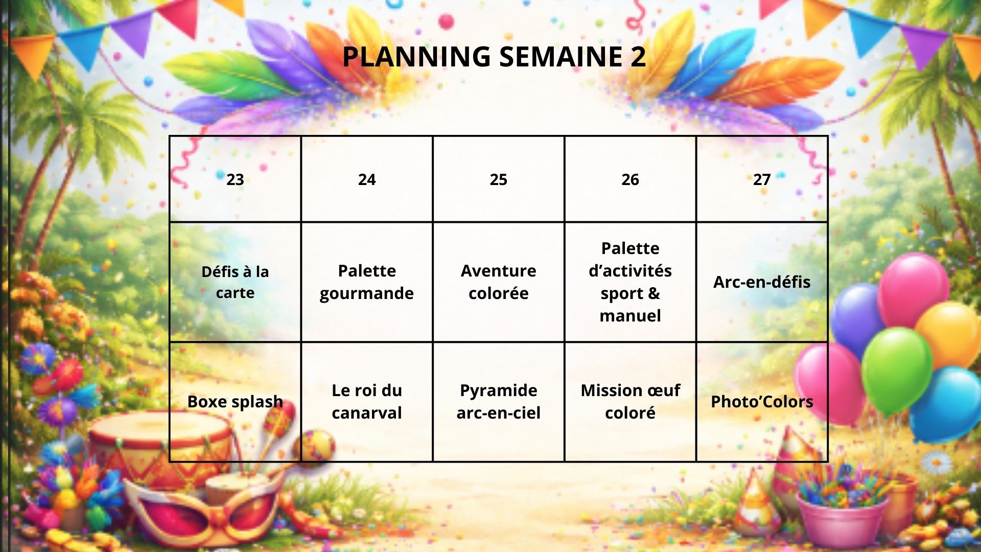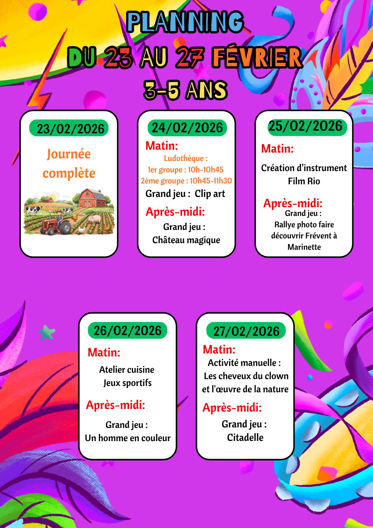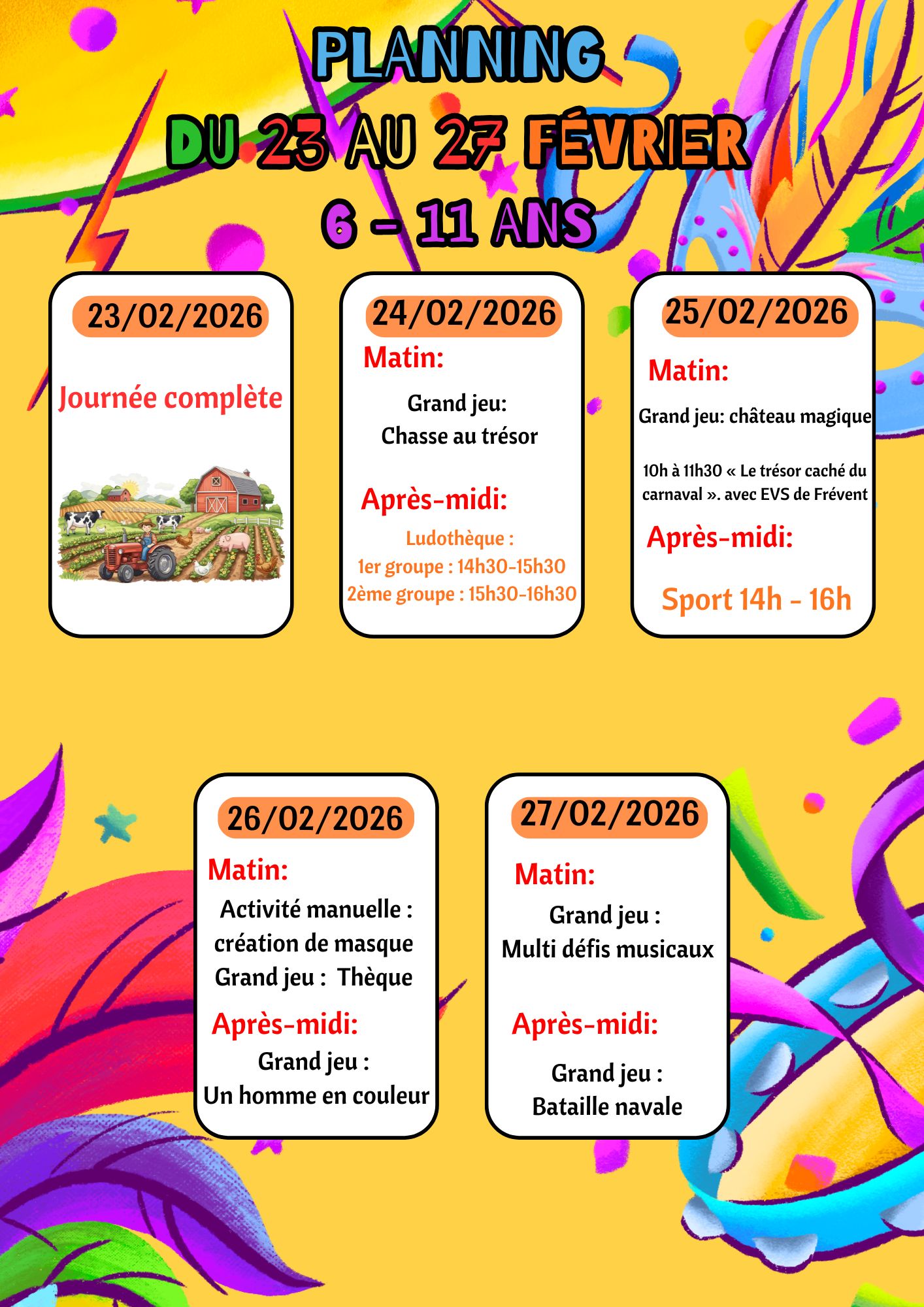 Planning du 23 au 27 février