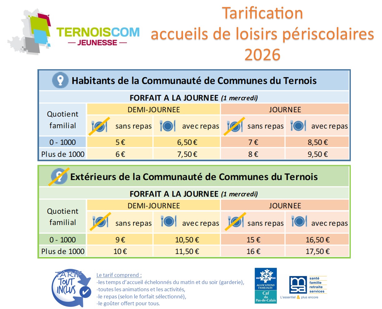 INFOS au service jeunesse : jeunesse@ternoiscom.fr ou au 03.21.04.01.68