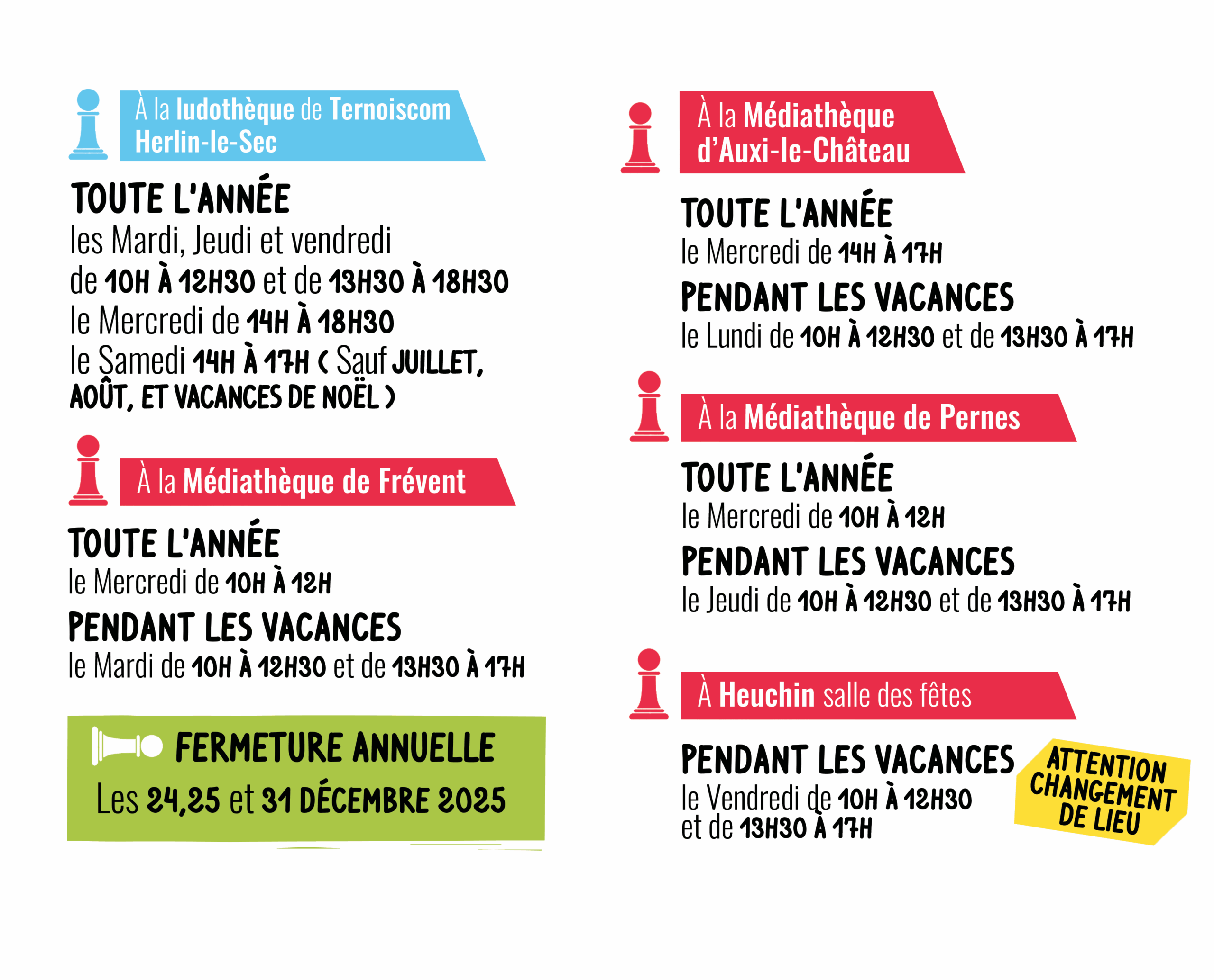NOUVEAUX HORAIRES / NOUVEAUX LIEUX